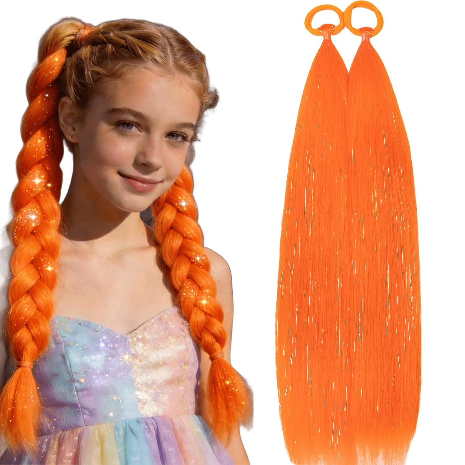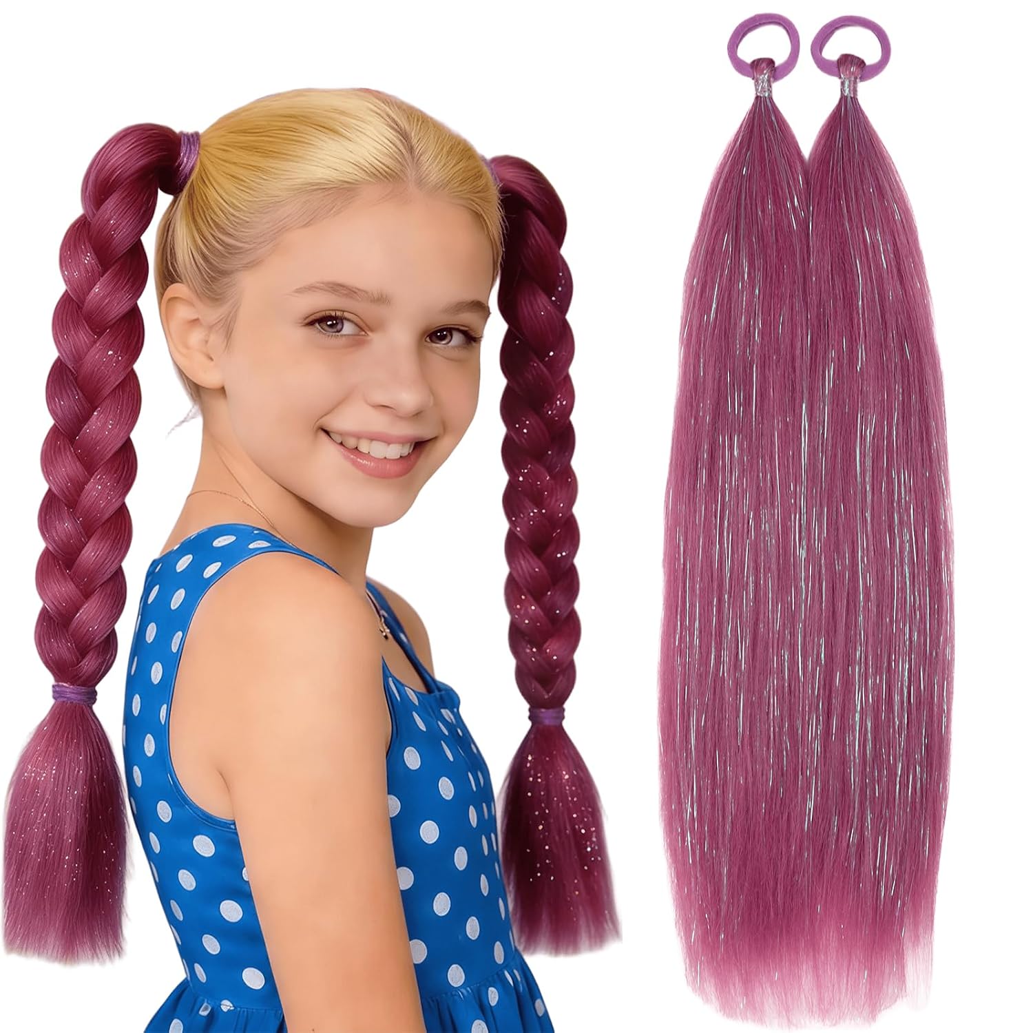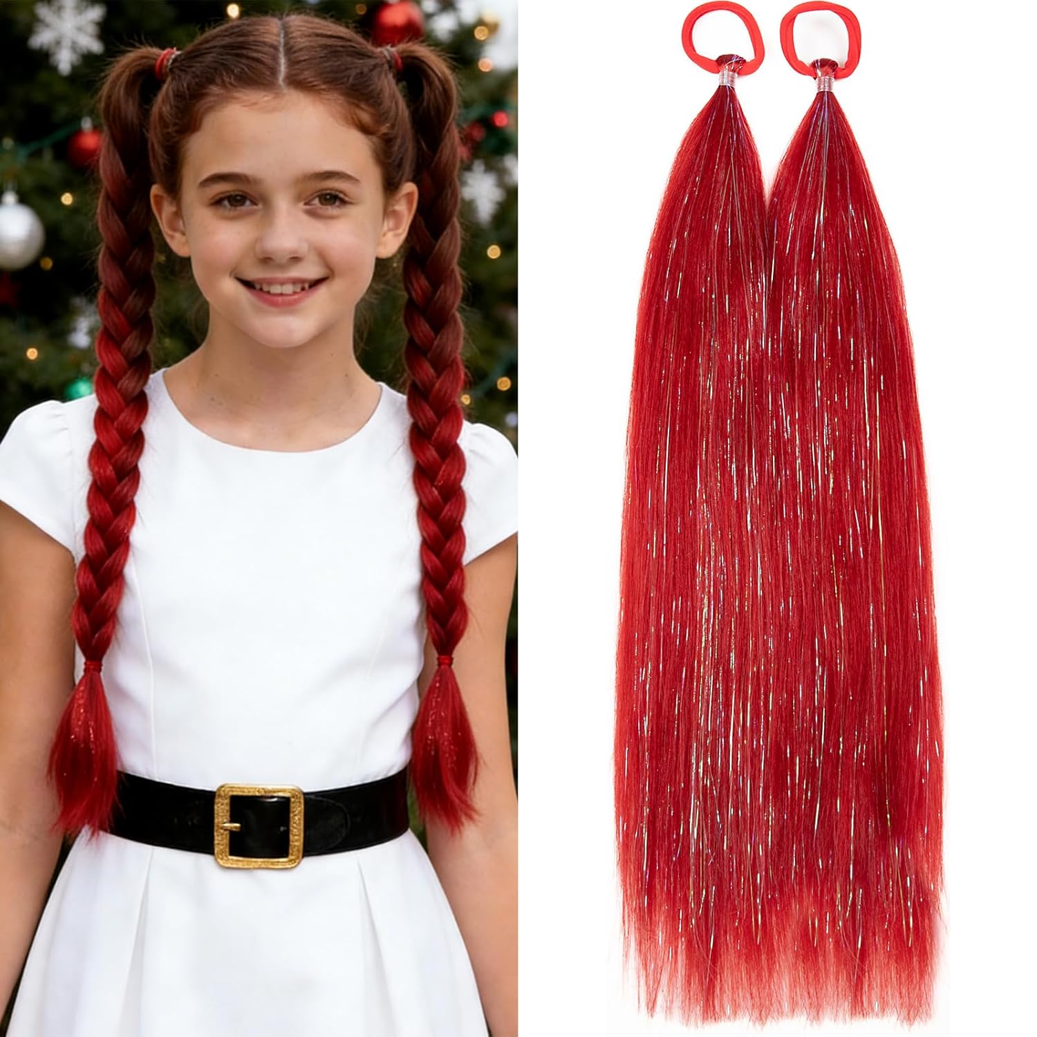 Colored Hair Extensions Red Ponytail Extension 2 Packs, 20 inch Crazy Hair Day Accessories for Women, DIY Festival Wacky Rave Braids,Tinsel Mixed (Red)