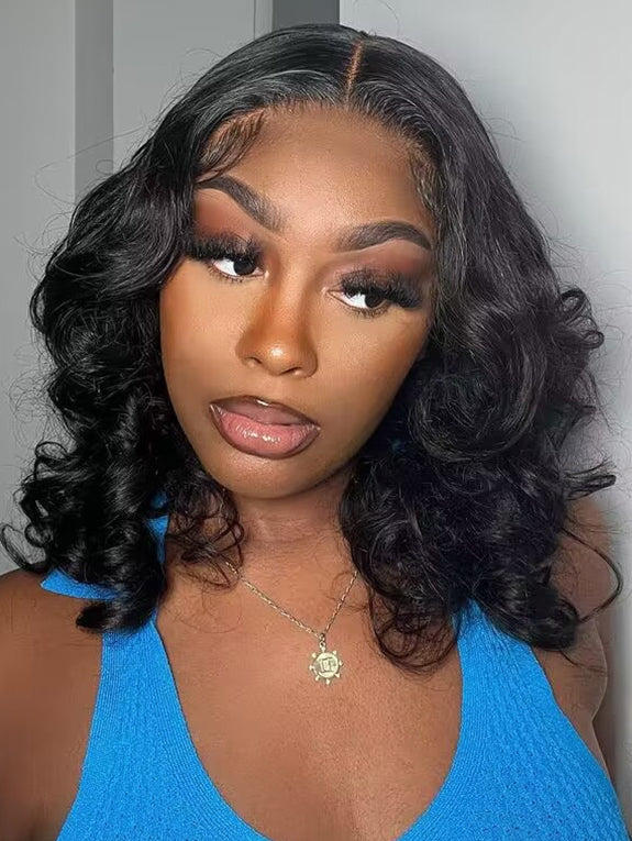 Menglle Hair 220% Density Bouncy Wave Blow Out 7x6 Pre-Cut Lace Closure Wig Spiral Curl Glue-On Human Hair Glueless Wigs With Middle Part 90s Style